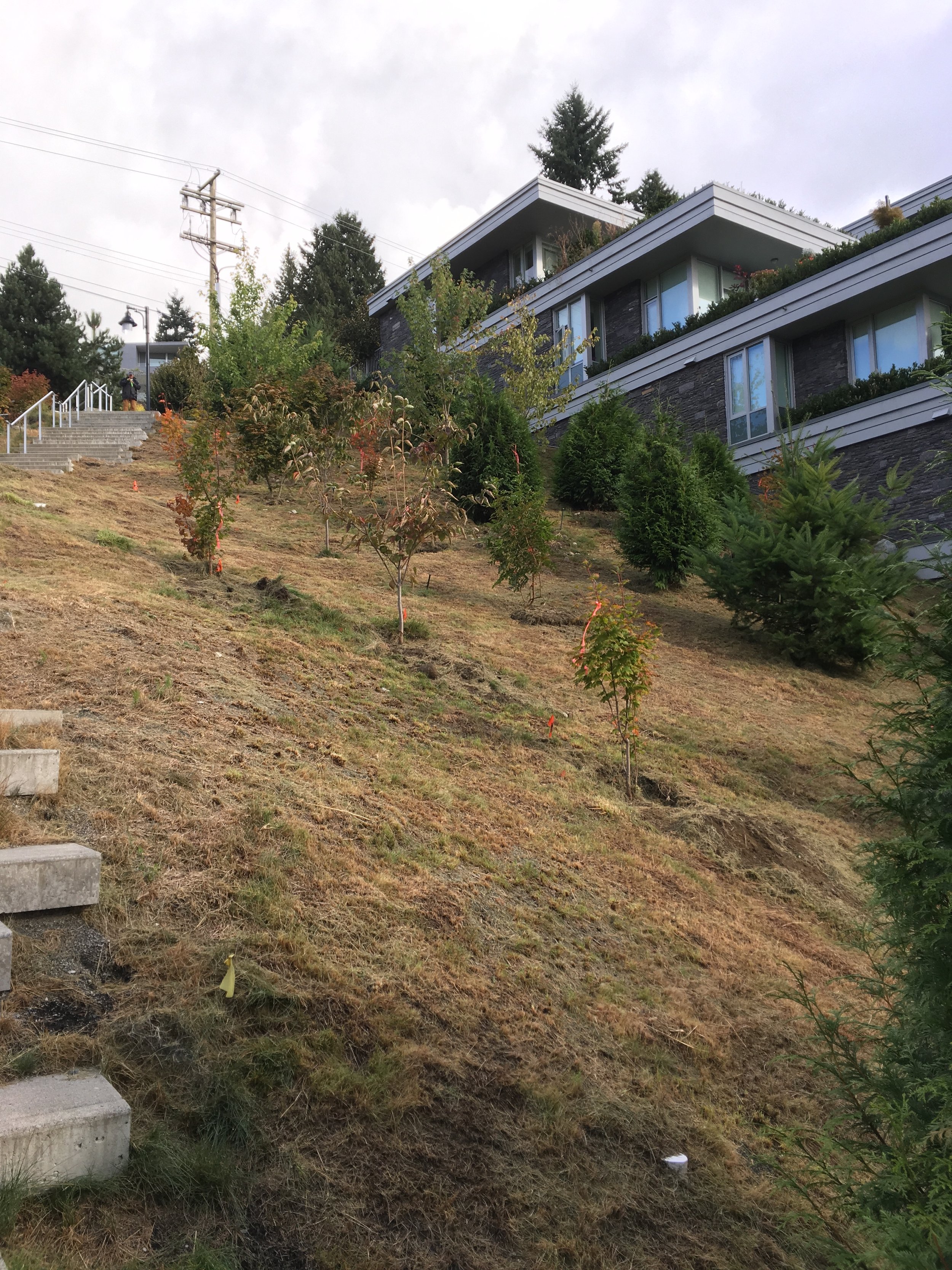 Alina was able to understand our needs of reducing maintenance costs along with recommending a plan that included trees, shrubs and bushes that are native to the west coast and will thrive in our climate. The result is astounding with a wonderful variety of deciduous and coniferous trees, colourful shrubs and berries, and suitable low growth ground cover that are planted to allow for a lush appearance and privacy for our homes.