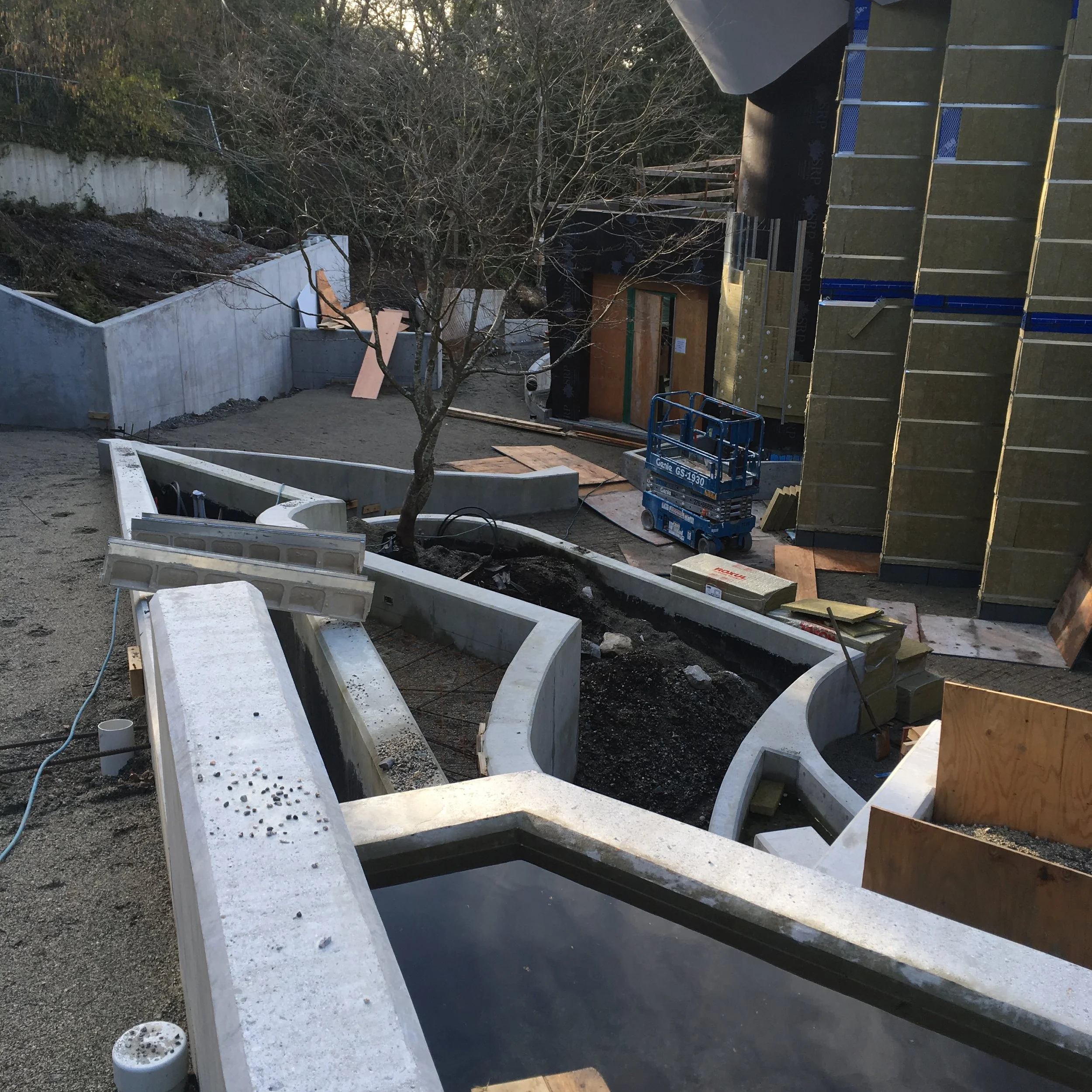 Every line from the house was extended into the landscape to create unity and an extension from his central locale seamlessly flowing from paving pattern to garden bed and frame. Sailor Moon was the inspiration for the tiered concrete framed landscape and waterfall in the back yard. As it turns out, his mom’s favourite thing is Sailor Moon. The landscape evolved into a bold graphic and dynamic flow of landscape elements that served the viewing purpose and intention while serving our pollinator population.